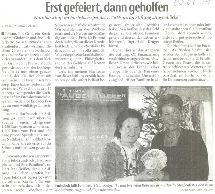 Zeitungsbericht: Erst gefeiert, dann geholfen